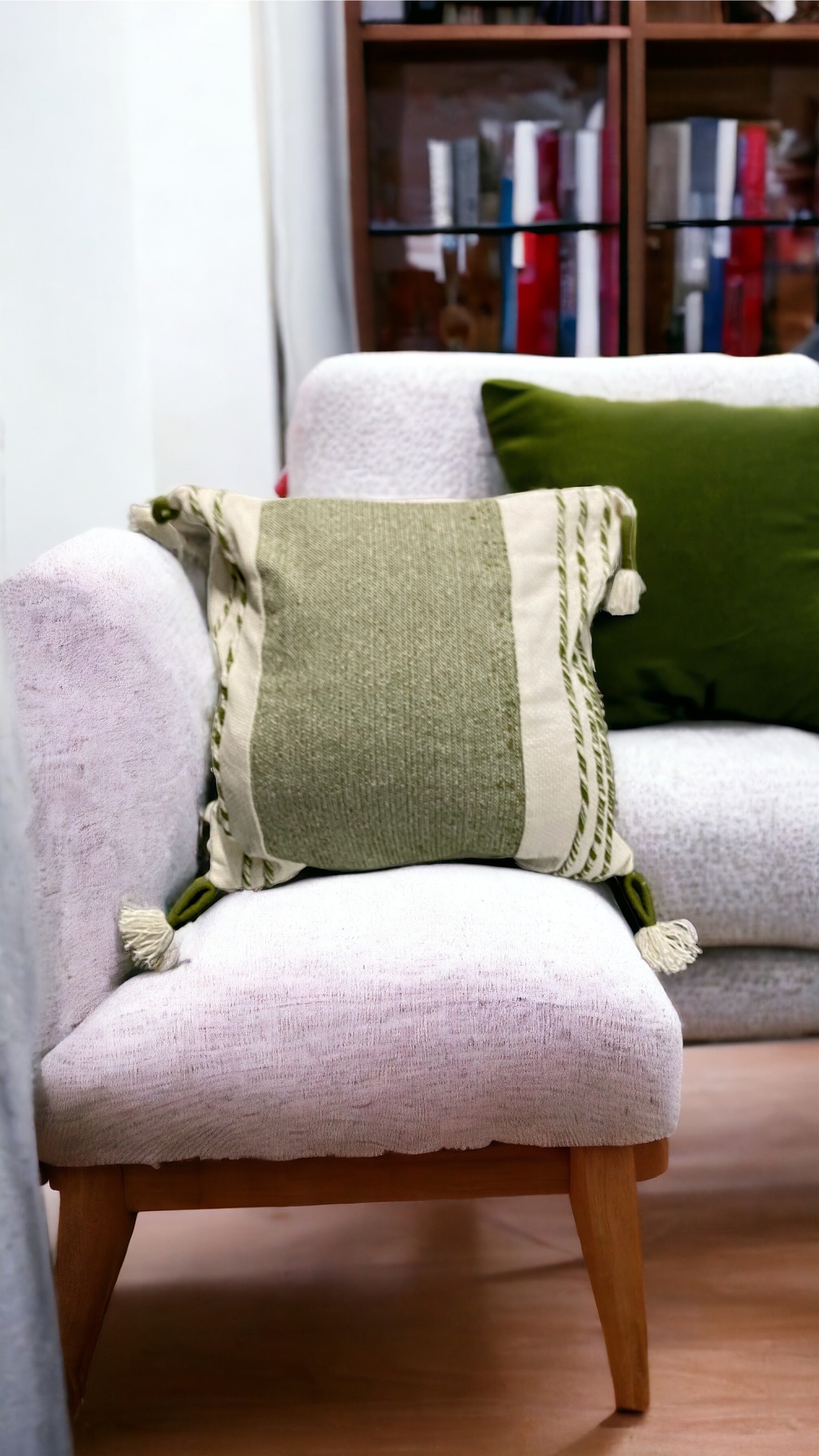 With a size of 20 x 20 inches, these pillow covers are ideal for standard-sized pillows, adding a layer of plushness to your bed or sofa. Whether you're looking to refresh your bedroom or living room decor, our Green & Natural White Striped Tasseled Linen Textured Pillow Shams are the perfect choice.