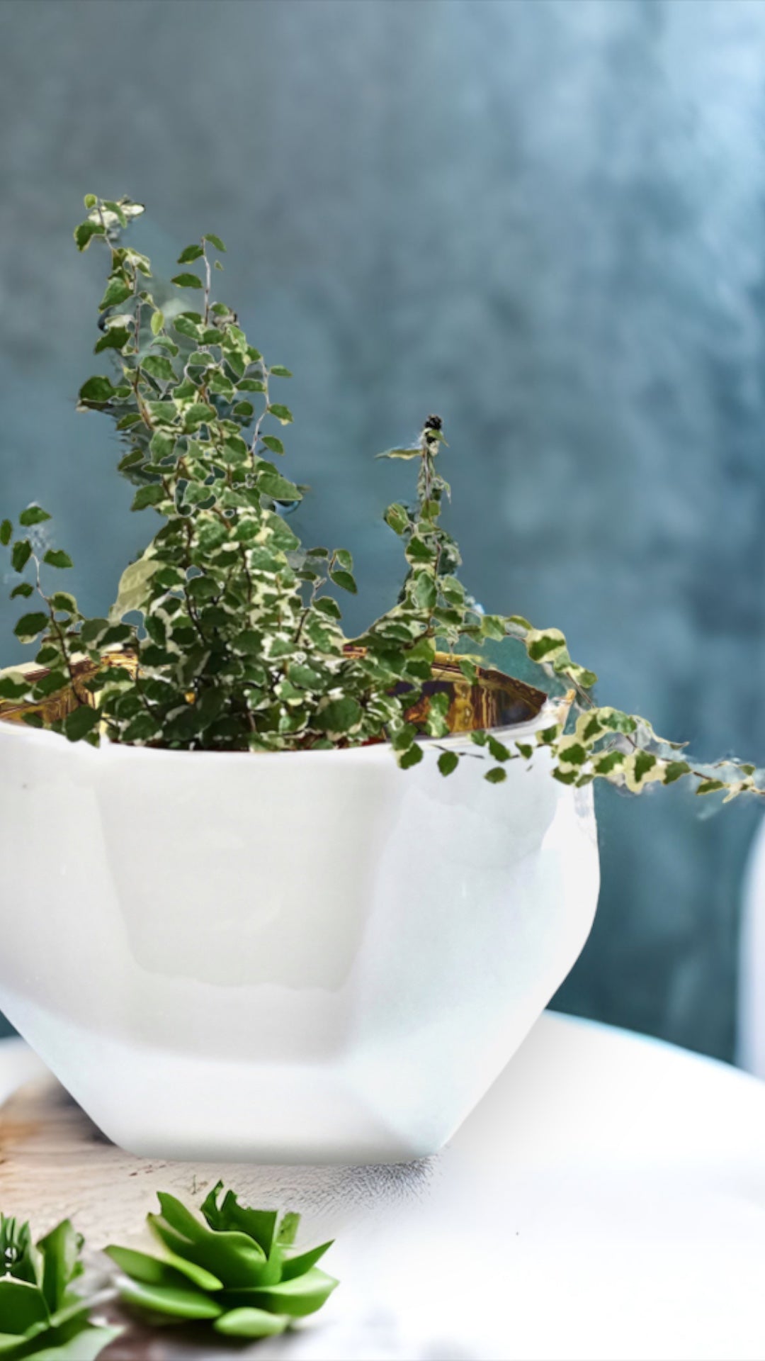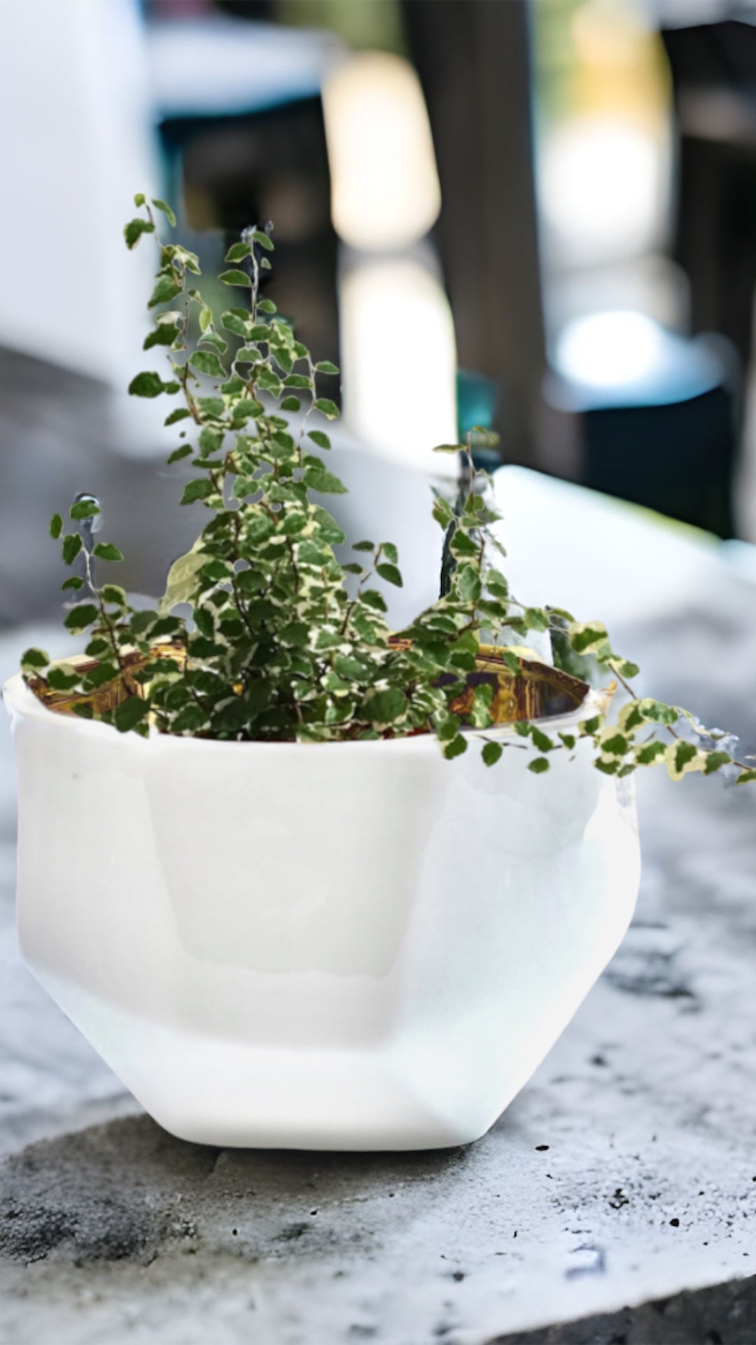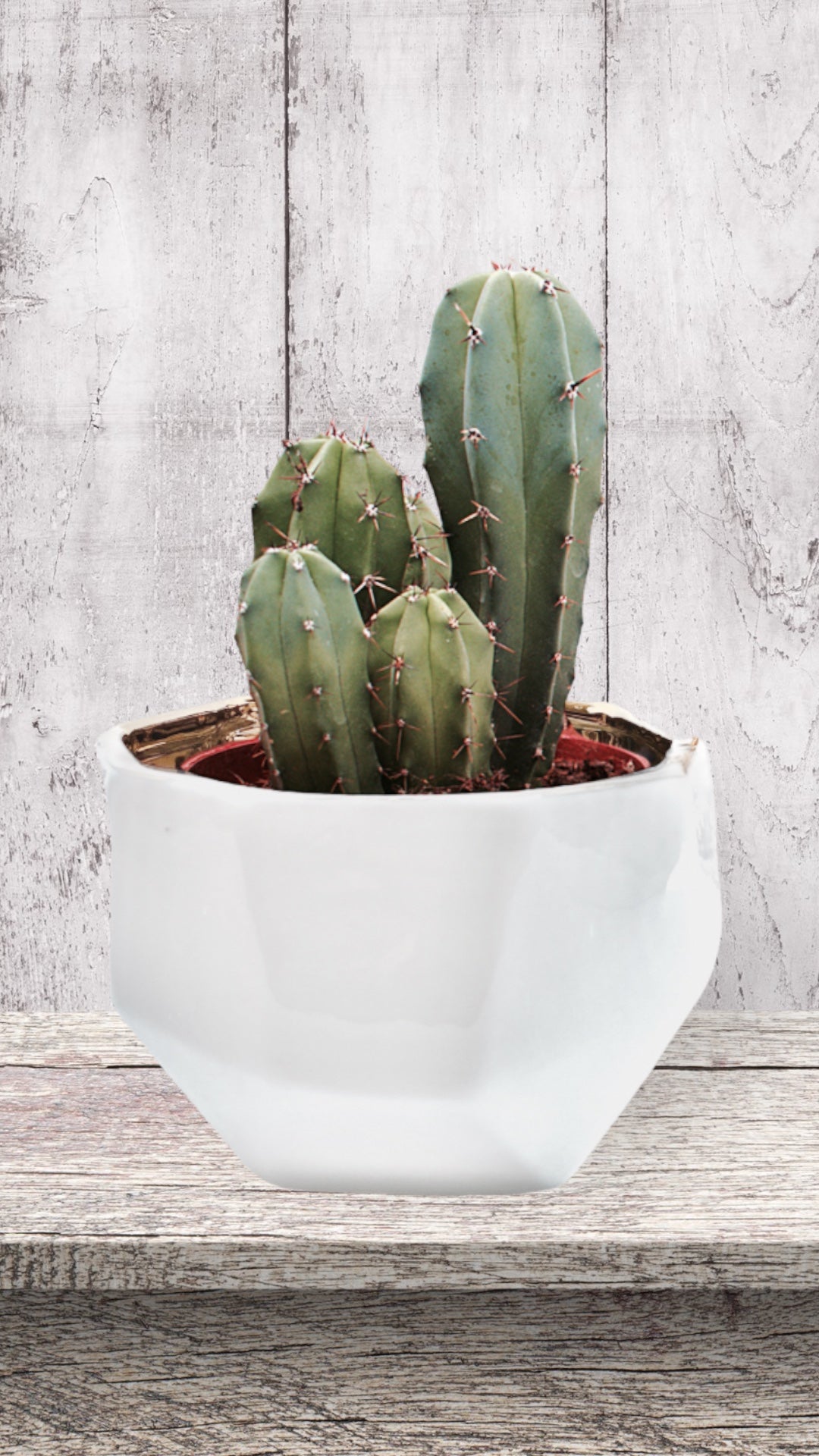 The Handmade Elegant White & Gold Ceramic Planter/Pot is a stylish addition to your home decor. The exterior of the container is off-white with facets making each container one-of-a-kind.  The gold interior may have some bubbling due to the electroplating application.