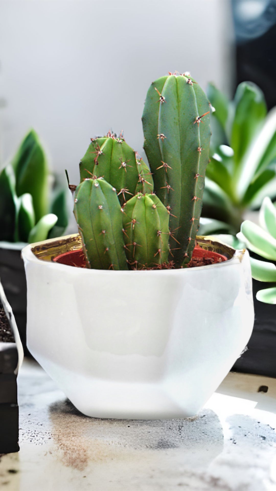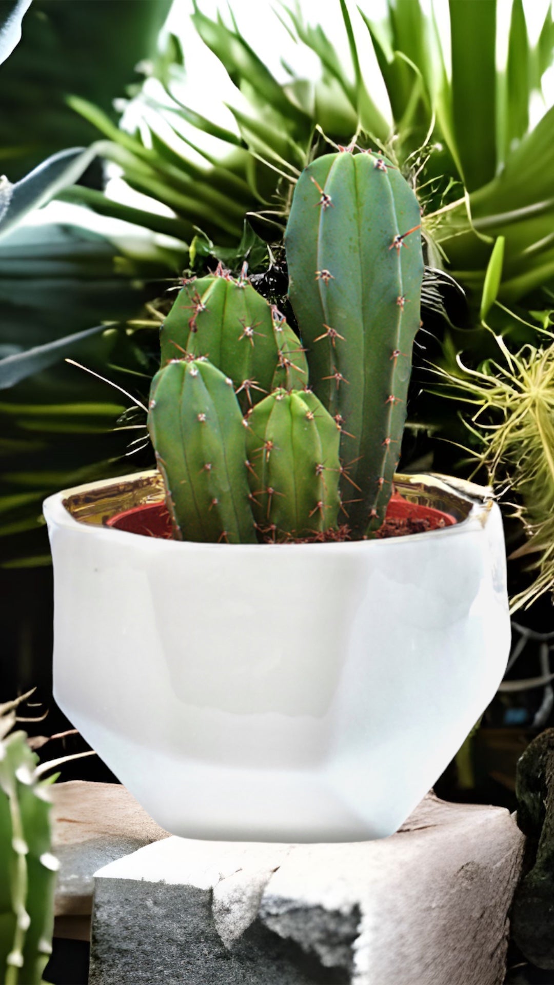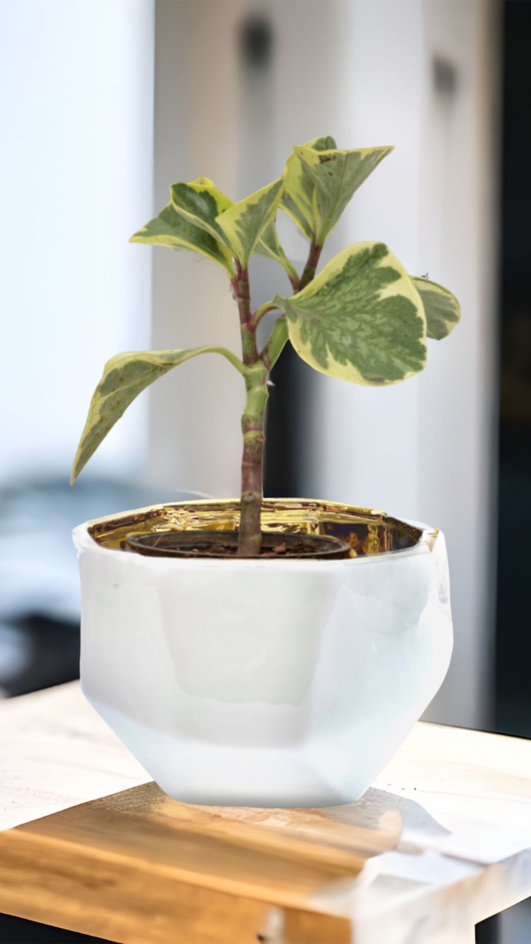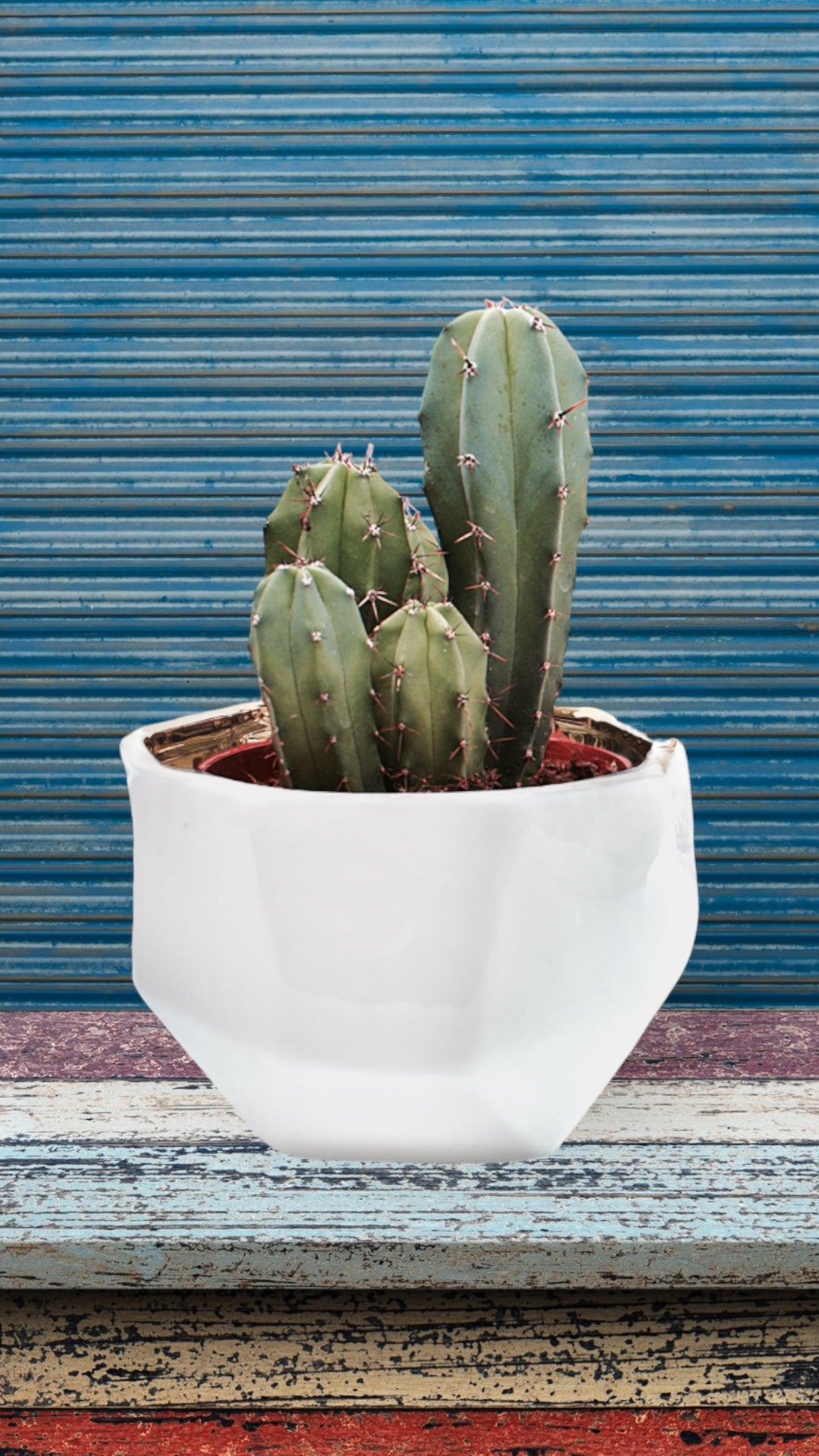 The Handmade Elegant White & Gold Ceramic Planter/Pot is a stylish addition to your home decor. The exterior of the container is off-white with facets making each container one-of-a-kind.  The gold interior may have some bubbling due to the electroplating application.