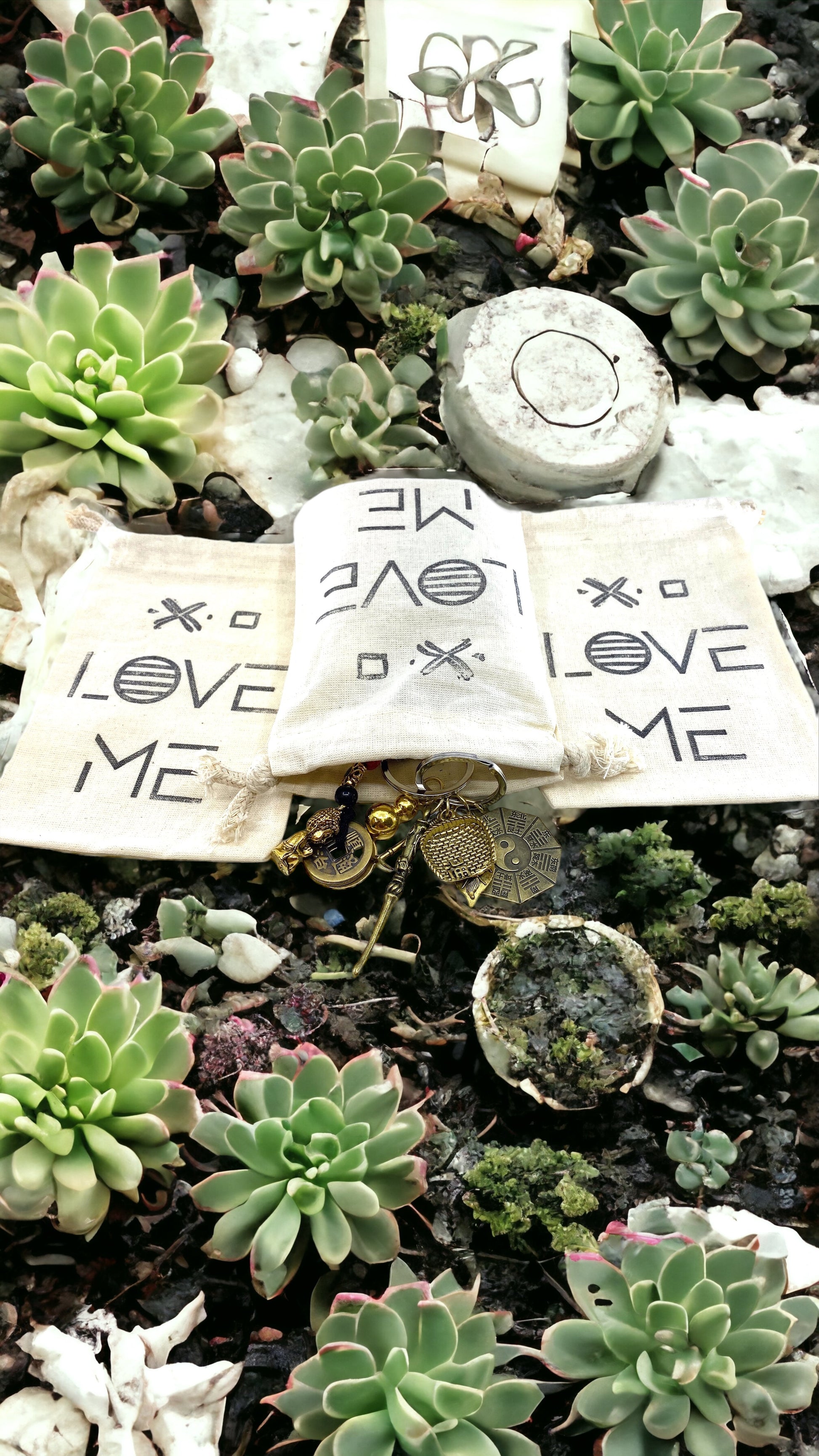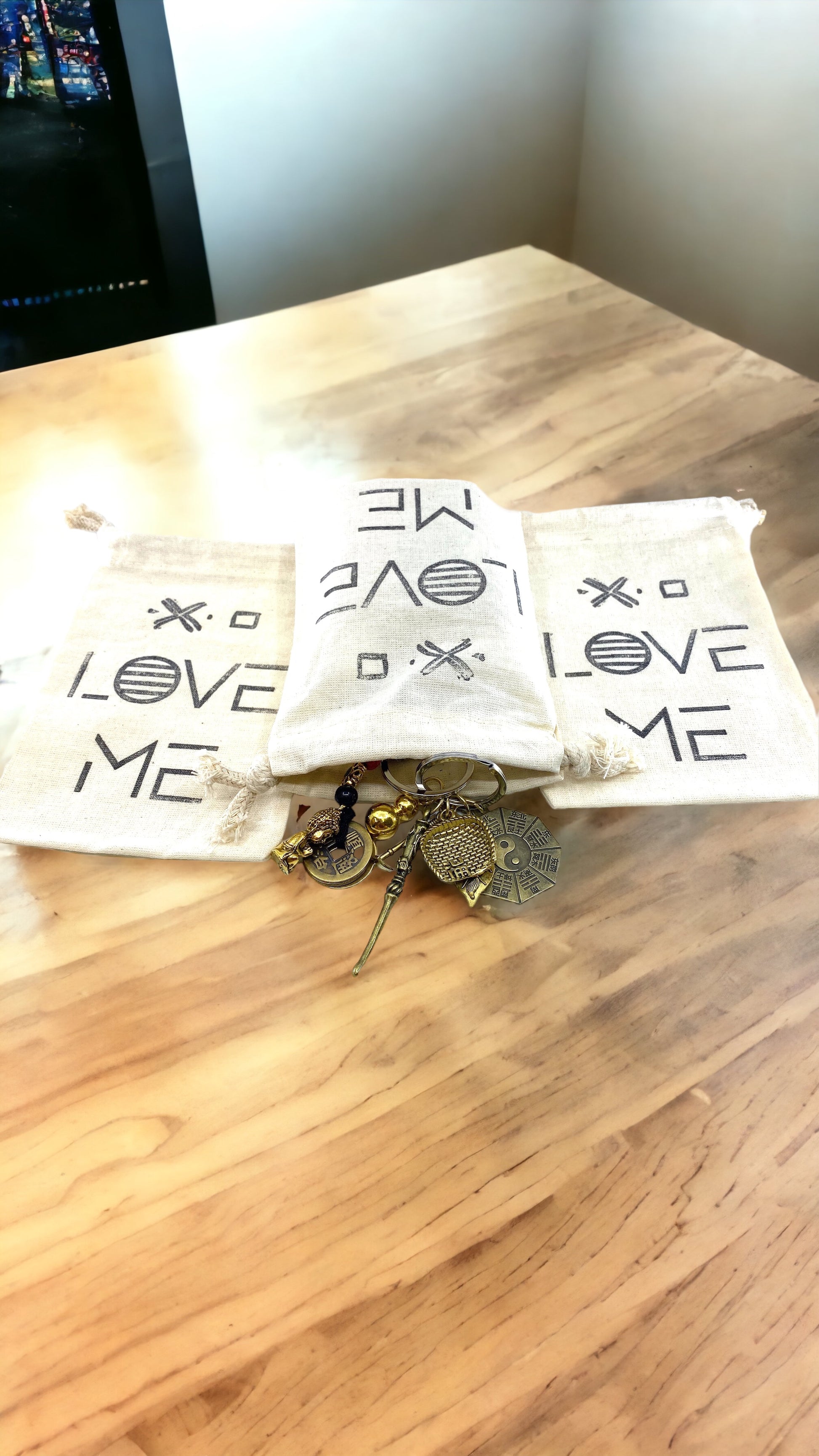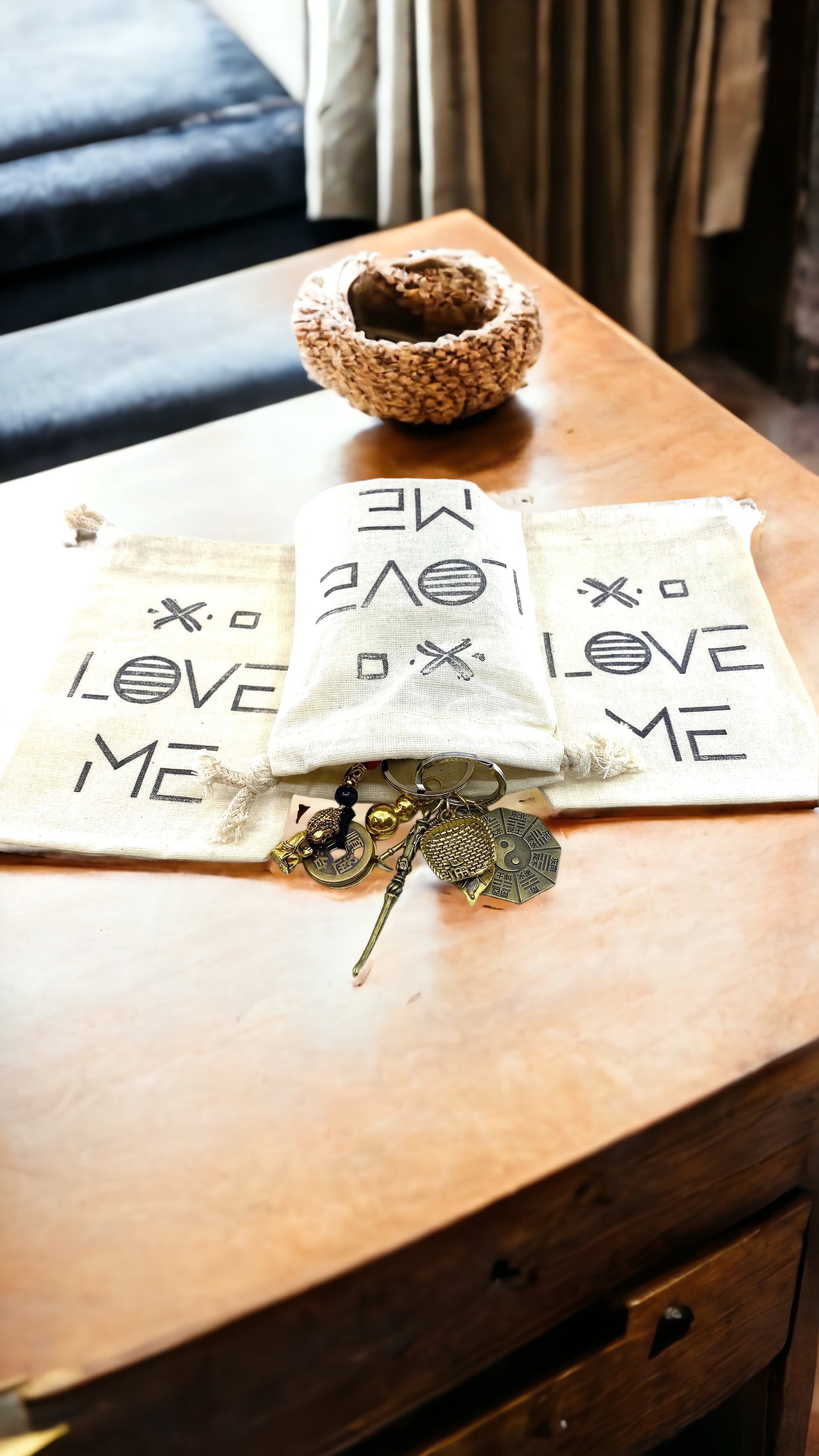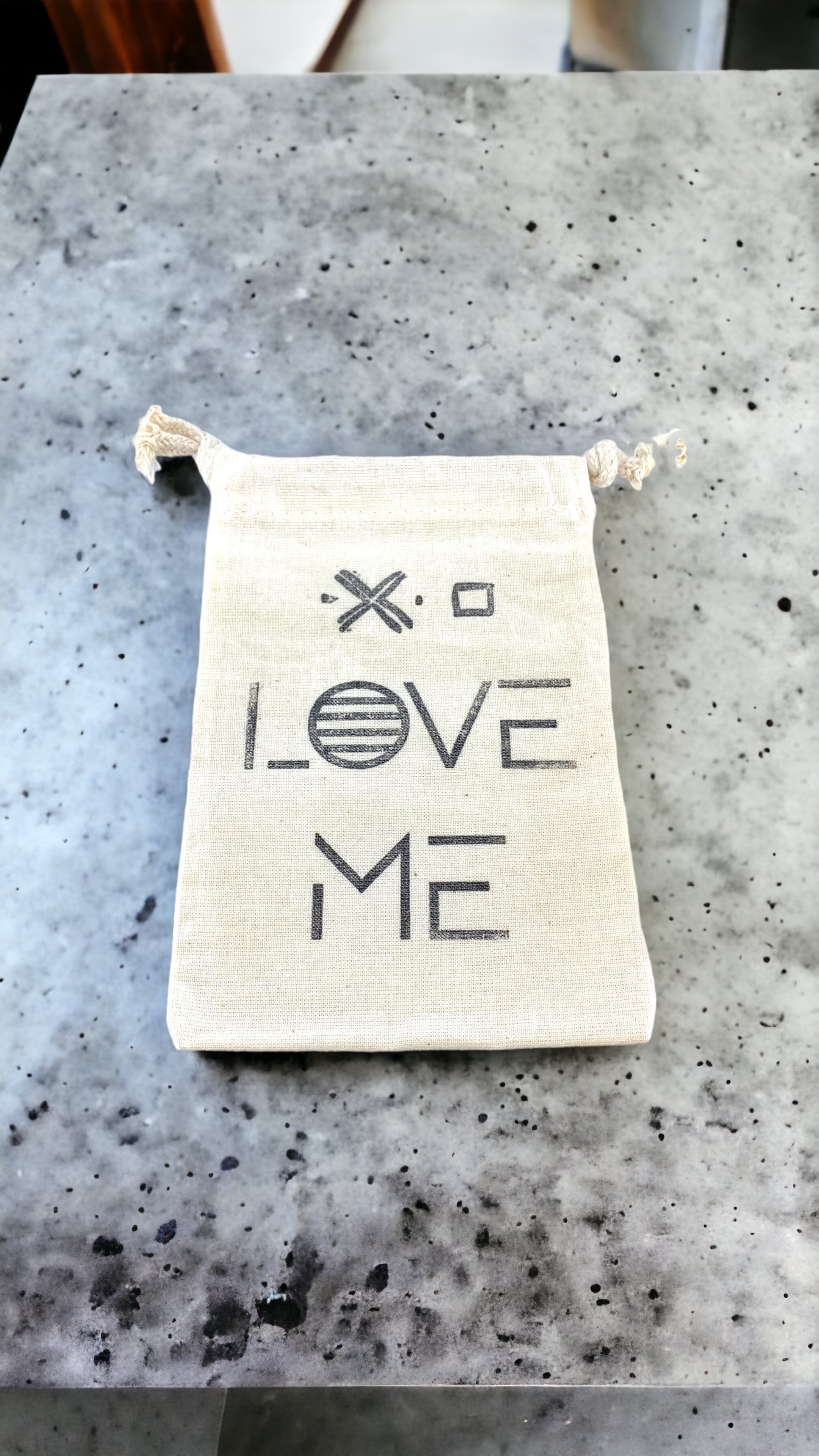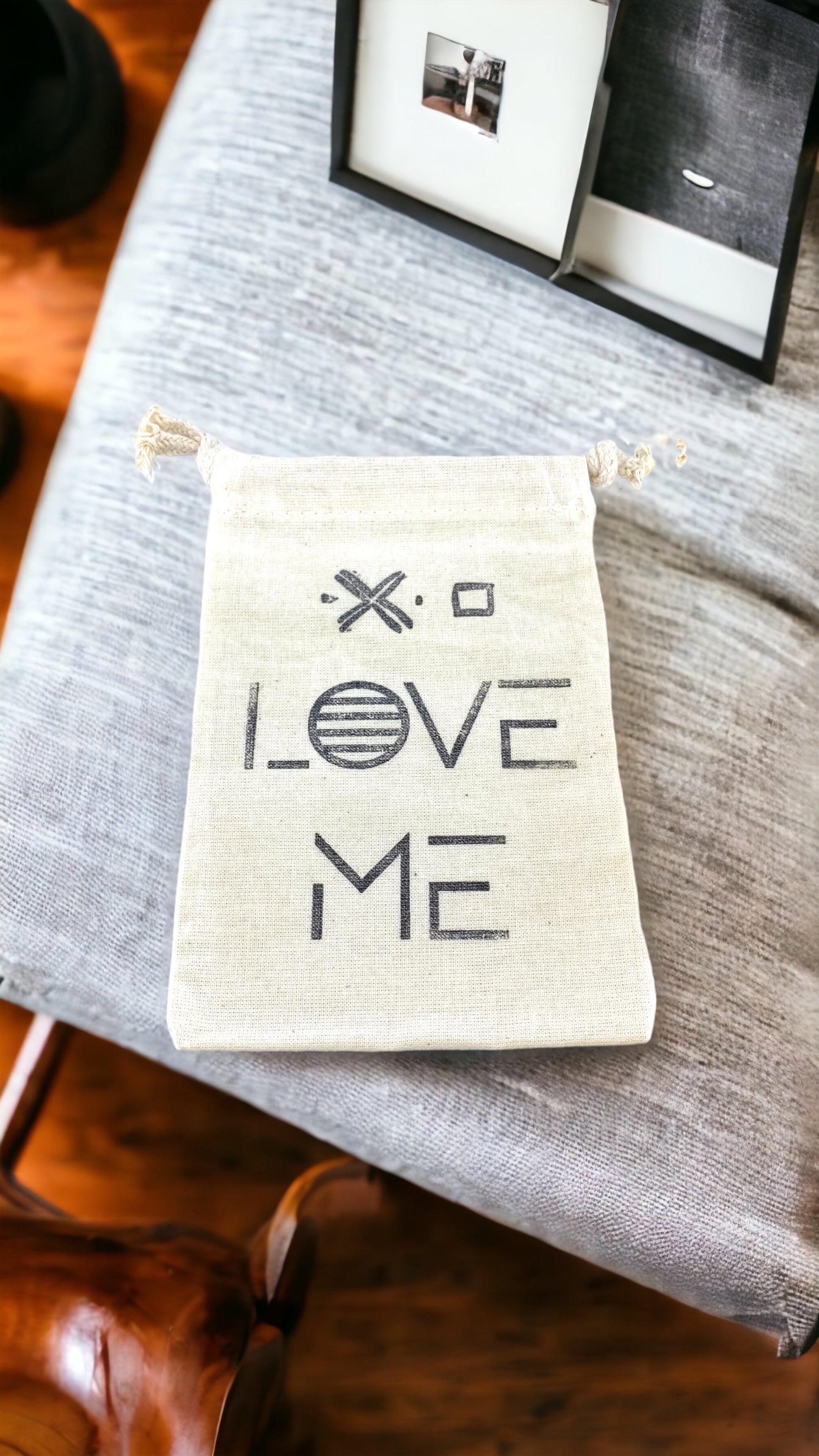 Hand Stamped, Love Me, Cotton Drawstring Pouches 4" x 6"